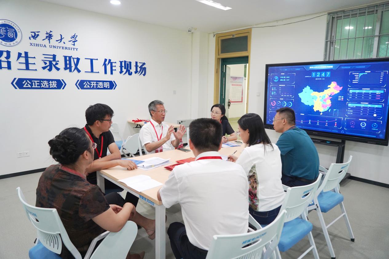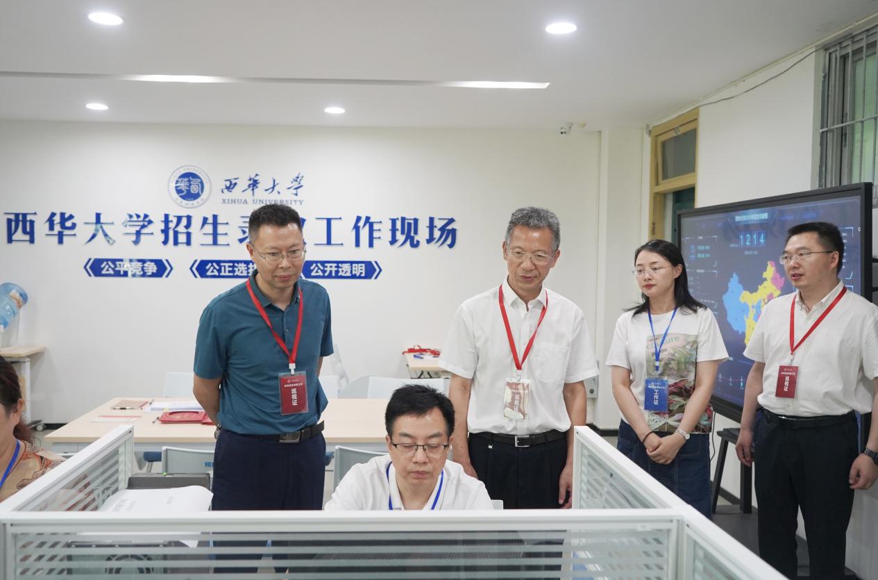 招生录取期间,校党委书记刘树根、校党委副书记张力等来到录取现场,检查指导2023年招生录取工作,看望慰问招生录取一线的工作人员,并听取了招生与就业处负责人关于录取工作进展与流程、已完成录取省份生源质量和在川一本批次招生进展情况的汇报。刘树根表示,要严格按照上级部门要求,高质量、高标准做好学校今年本科招生录取工作,要做好新生入学前教育和入学后专业培养,让每一位学生都能在西华成长成才。他强调,毕业生就业质量是学校人才培养质量的重要体现,要持续做好招生、培养、就业一体化工作,帮助毕业生实现更高质量就业。
