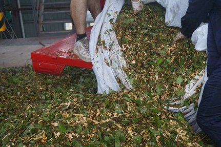 粉碎机正在粉碎油樟树叶