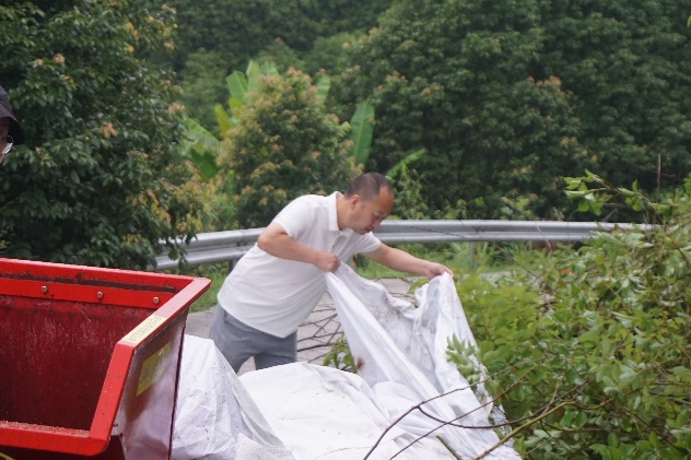 运输人员将油樟树碎片送至堆放点