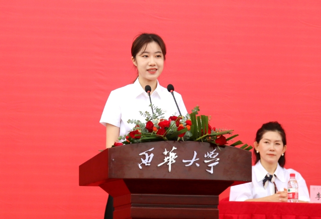 本科新生代表、来自宜宾校区的建筑与土木工程学院陈佳同学号召全体新生认真学习,踏实进取,努力提升自己的专业知识和技能;珍惜机遇,投身实践,通过参加第二课堂活动和学科竞赛,开阔视野,提升能力,培养自己的格局和胸怀;团结奋进,在追梦路上坚定理想、不忘初心、努力前行,在大学之旅中收获一道值得纪念的风景。