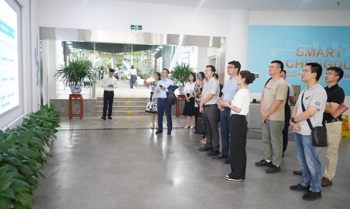 成都数据集团智慧蓉城研究院副总经理蒋翔宇及咨询研究中心研究员彭雪梅热诚接待了徐雷一行,并引导调研参观了智慧蓉城应用场景实验室、生态企业产品以及优秀应用场景等系列展厅,随后双方进行了座谈交流。