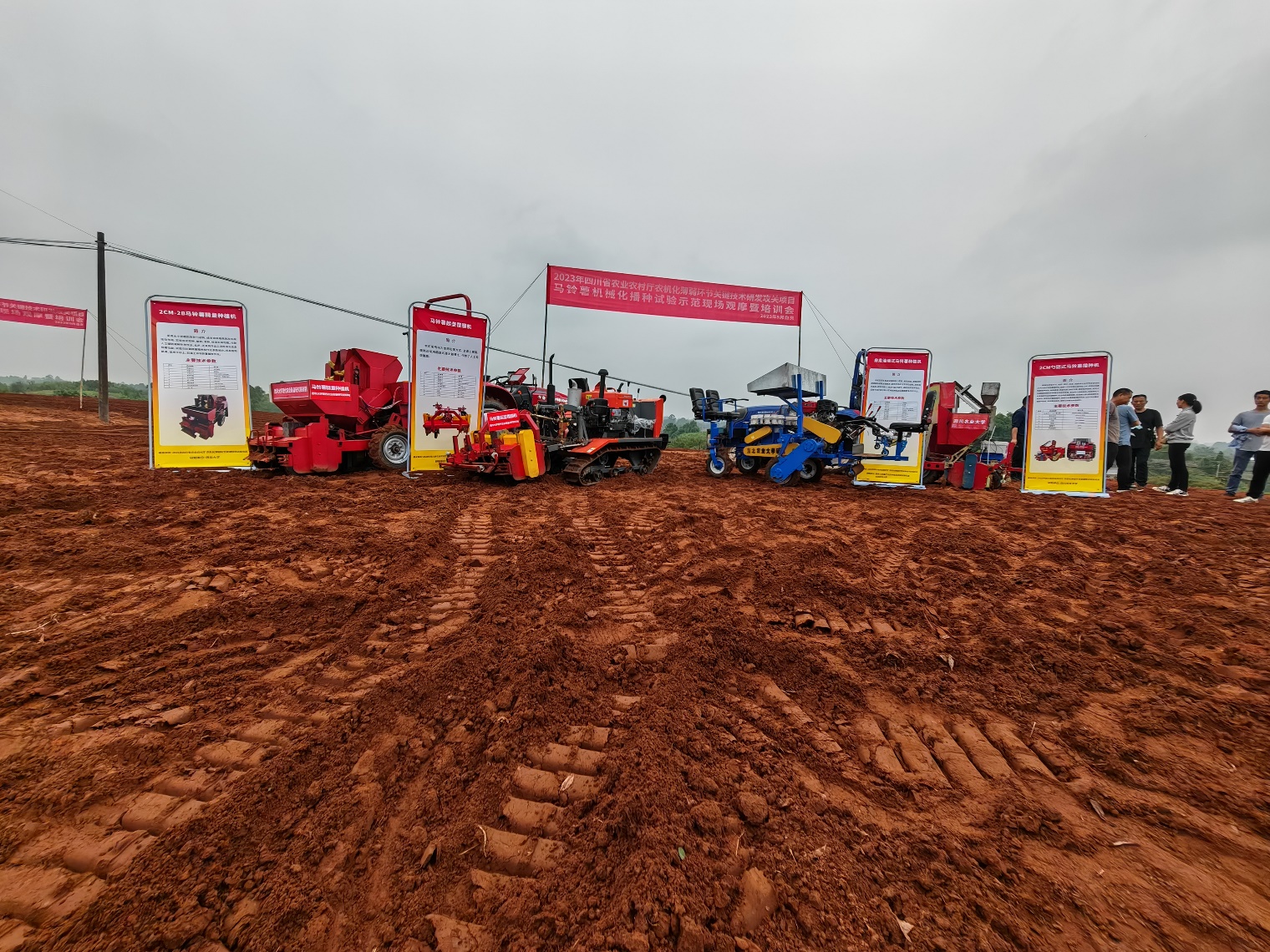 秋风送爽日气凉,播种农田望丰祥。秋分时节,四川马铃薯正值播种,各地抓农时忙播种。近日,为推进2023年四川省农业农村厅农机化薄弱环节关键技术研发攻关项目,西华大学现代农业装备研究院在自贡市贡井区五宝镇牵头组织了马铃薯机械化播种试验示范现场观摩暨培训会。四川省农业农村厅农业机械化处副处长肖小川莅临指导,自贡市及贡井区农业农村局、五宝镇人民政府农机化工作的领导、省农机推广及鉴定部门技术专家,以及中国农科院、省农科院、凉山州农科院的农艺专家、生产制造企业代表和当地农机专业合作社、马铃薯种植大户代表等90余人参加活动。