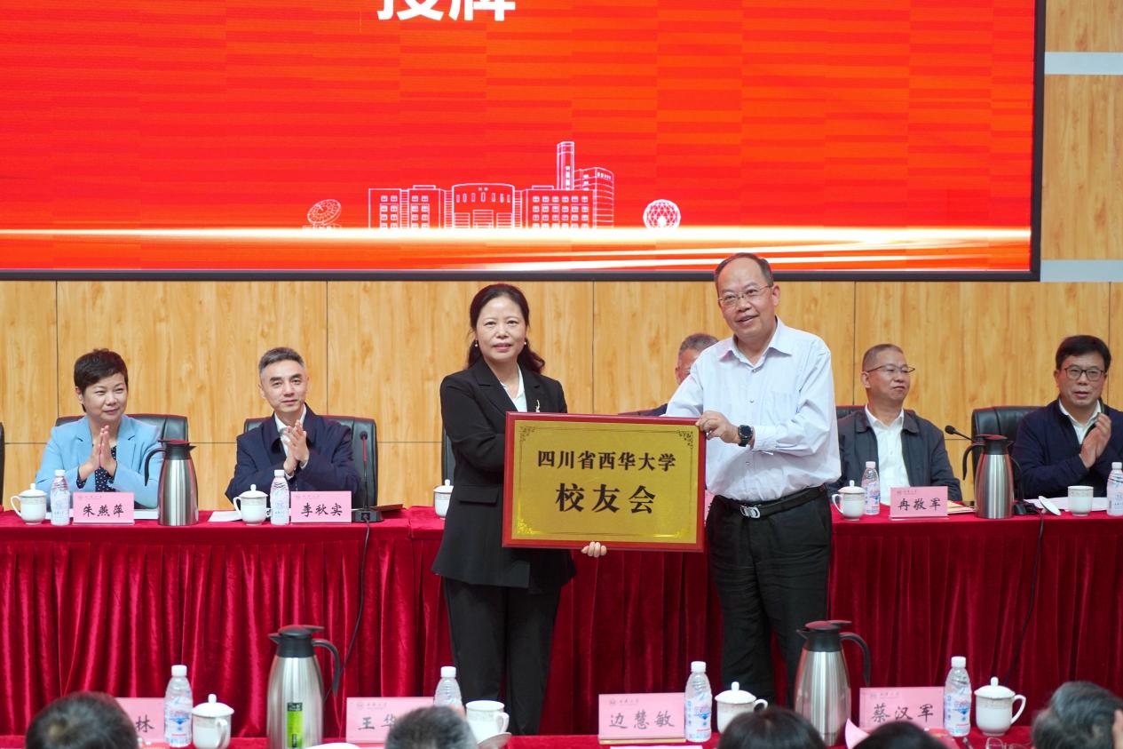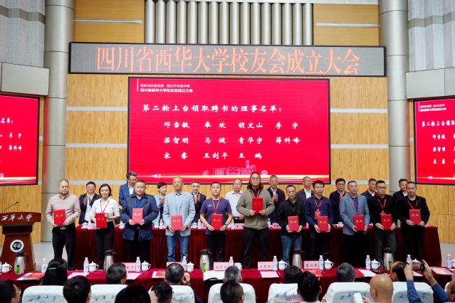 省民政厅二级巡视员冉敬军宣读了四川省民政厅《关于准予四川省西华大学校友会成立登记的批复》文件。国家督学,中共四川省委教育工委委员,省政府教育督导委员会专职副主任,教育厅总督学傅明为四川省西华大学校友会授牌。随后,主席台领导为首届四川省西华大学校友会理事、监事颁发了聘书。