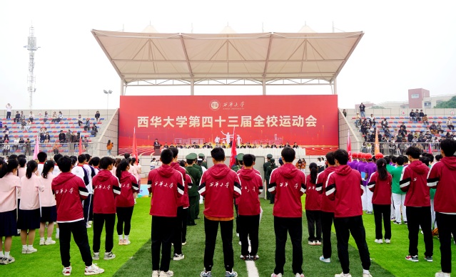 李秋实致开幕辞。他代表学校对运动会的胜利召开表示热烈的祝贺,向辛勤筹办本届运动会的全体师生员工表示衷心的感谢。他指出,随着近年来党和国家的体育方针对学校的体育教育建设的重要性进一步强化,学校历来高度重视教育工作,积极推行五育并举,并取得了显著成果。李秋实表示,一年一度的田径运动会是西华大学体育生活的重要组成部分,也是学校体育工作的一次大检阅,更是广大师生精神面貌和综合素质的一次集中展示,希望大家在课余时间放下手机、走向操场,体验运动的美好;希望你们爱上一两个运动项目并学会其基本技能,养成良好的运动习惯并终生坚持;希望你们“每天锻炼一小时,健康工作五十年,幸福生活一辈子”,让强健的体魄和愉悦的身心与我们终生相伴。