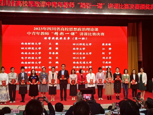 10月29日,2023年四川省高校思想政治理论课中青年教师“精彩一课”讲课比赛决赛在四川师范大学举行。我校马克思主义学院教师再创佳绩,荣获特等奖1项、一等奖2项、二等奖2项。
