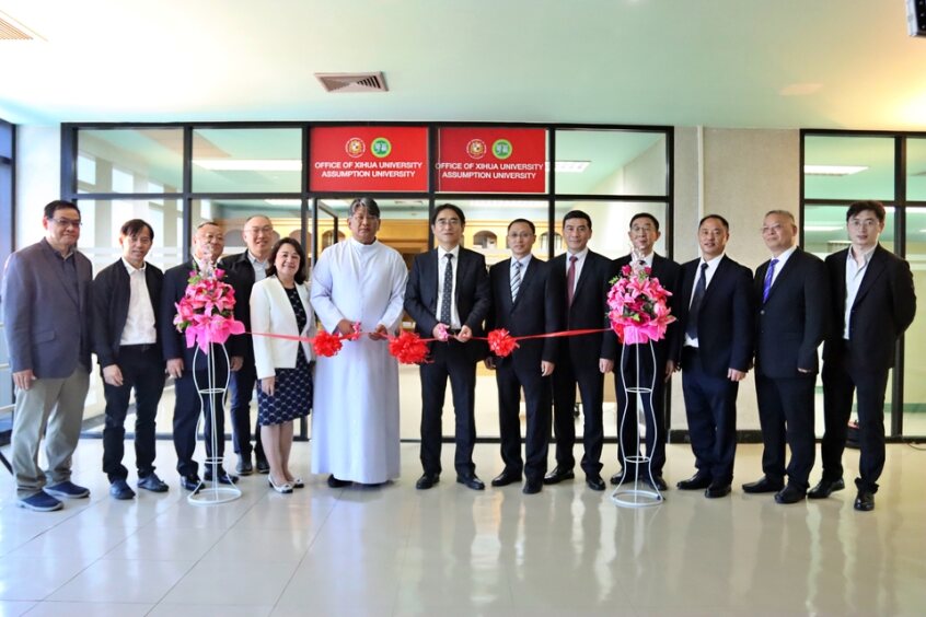 会谈后,我校泰国曼谷易三仓校区剪彩仪式在易三仓大学主楼顺利举行。