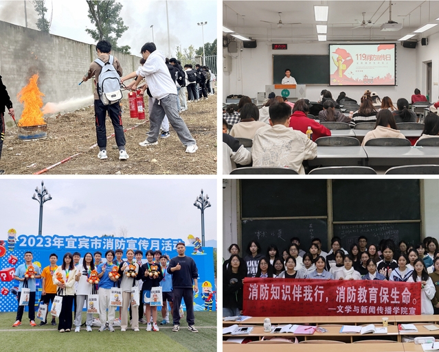 据悉,为切实增强广大师生消防安全意识和自救能力,近日来,学校各单位纷纷采用线上线下相结合方式,积极开展消防安全教育活动,营造全民关注消防、参与消防的浓厚氛围。宜宾校区承办了2023年四川宜宾消防宣传月启动仪式,现场师生观摩了搜救犬箱体搜救、攀登障碍训练等技能展示,并通过参与火场逃生接力、穿戴消防服翻越障碍等趣味消防运动项目,近距离体验了消防安全工作的重要性。应急管理学院与彭州南津社区工作人员联合开展了社区消防安全隐患排查活动,志愿者前往社区开展消防安全知识培训讲座。材料科学与工程学院开展了灭火实操演练活动,管理学院开展消防安全疏散演练,以演促防,筑牢消防安全保障。法学与社会学学院、外国语学院、体育学院、能源与动力工程学院等开展主题班会,宣传消防安全知识,增强同学们的消防意识,音乐与舞蹈学院学生在班会上齐唱《消防兵之歌》,用歌声歌颂消防英雄无私无畏的奉献精神。美术与设计学院开展“消防安全进学校,共筑平安防火墙”主题作品云展览,学生通过原创手绘、广告作品,传播消防宣传知识,弘扬正能量。计算机与软件工程学院、汽车与交通学院分别举办消防主题演讲比赛、消防安全知识竞答活动,通过竞赛激发同学们的学习热情。文学与新闻传播学院组织了消防倡议横幅签名活动,同学们纷纷签名表示要成为消防安全的宣传者、践行者。理学院、经济学院、马克思主义学院等发布消防安全科普微信,全方位宣传消防安全知识,将消防安全理念、知识和防范技巧等融入宣传和教育,全面提升师生消防安全素质。