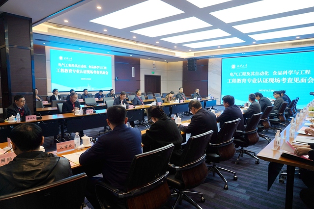 在校考查期间,专家组一行实地考查了易班发展中心、图书馆、公共基础实验室、电气工程及其自动化专业实验室、食品科学与工程专业实验室等,并全方位考查了学校的基础设施、专业建设和学生实践等情况。专家组还调阅了试卷、毕业设计(论文)、课程设计、实验实习报告、课程质量评价报告、调研评价报告、教学大纲、评价机制、学生指导记录等材料,访谈了学校职能部门负责人、专业教师、管理人员,以及用人单位、校友和在校学生。专家组通过认真查阅教学资料和学生学习成果,并就自评报告中相关问题进一步进行核实,最后形成了考查意见和报告。