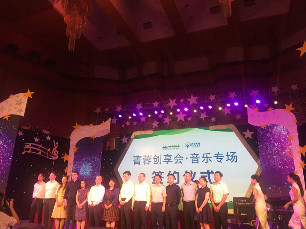 音乐项目落户签约仪式现场(左七为校党委书记边慧敏)