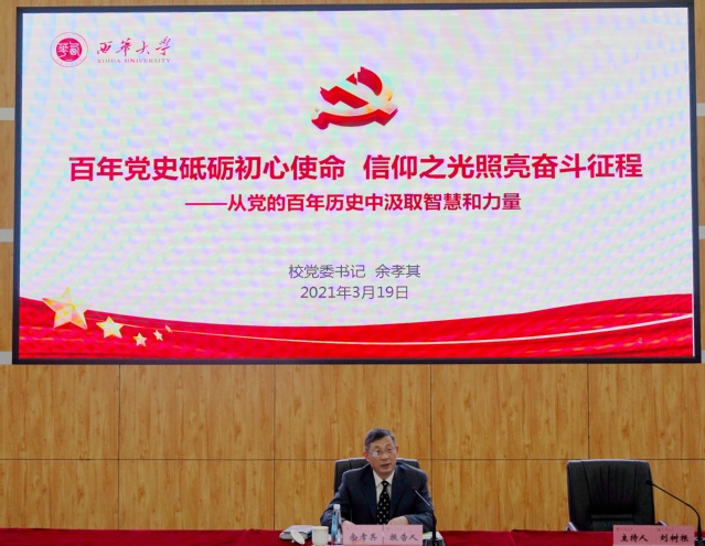 3月19日,校党委书记余孝其以《百年党史砥砺初心使命 信仰之光照亮奋斗征程》为题,讲了一堂生动、深刻、精彩的专题党课。校领导班子成员,副处级及以上领导干部和全体教工党支部书记参加大会并认真聆听了专题培训的第一堂党课。