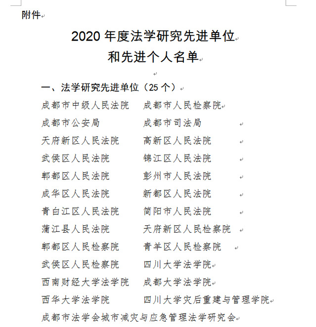 3月18日,中共成都市委政法委员会和成都市法学会印发了《关于表扬2020年度法学研究先进单位和先进个人的通报》(成政法委〔2021〕22号),对成都市中级人民法院等25个单位和宋英猛等123名个人予以通报表扬,西华大学知识产权学院、法学院被评为“2020年度法学研究先进单位”。