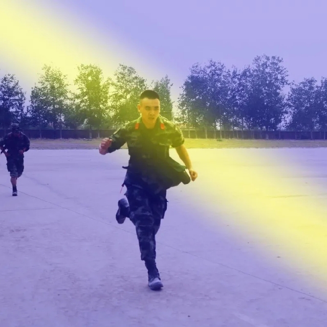 2017年9月,新兵们从成都坐铁皮车到石家庄,“在火车上就已经能感受到参军的氛围了,大家端正地坐在自己的位置上,我当时的心情是既期待又紧张。” 闫立坤说。新兵营对于每个刚参军的人来说就是“脱胎换骨”的地方。刚入伍一个月,因为高强度的训练,186cm高、190斤的闫立坤瘦了40多斤。武警对体能综合素质要求较高,而这也是他较为薄弱的地方。“一开始,你们知道我最怕哪三个字吗?”闫立坤不好意思地说:“三公里。”
