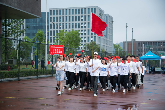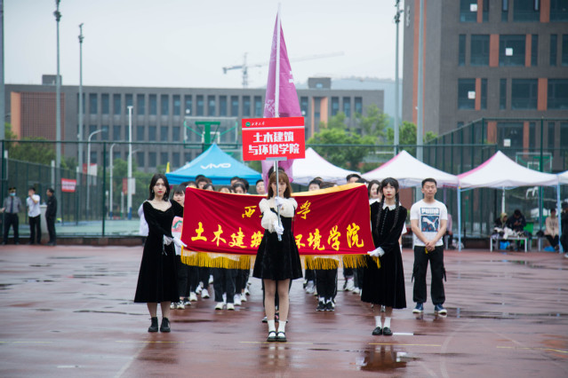 随着澎湃的入场乐声,方阵队伍浩浩荡荡。五彩亮丽的彩旗方队、严谨敬业的裁判员方队迈着整齐地步伐向主席台前进。手持方块的材料科学与工程学院变换队形拼出西华大学校徽造型,表达对西华的浓浓爱意;机械工程学院带来一曲健康操,舞步翩翩有活力,展现朝气蓬勃的精神风貌;挥舞红旗的文学与新闻传播学院,深情歌唱祖国,诠释了对祖国的祝福与热爱;经济学院男生用军体拳展示昂扬斗志,女生用啦啦操舞出青春活力……各个学院方阵通过不同的表演形式展现学院风采,在运动会场上形成了一道亮丽的风景线。