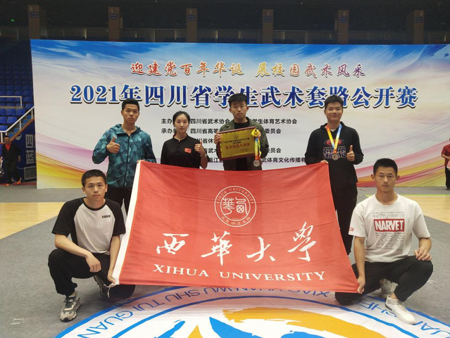 5月2日至4日,由四川省武术协会、四川省学生体育艺术协会主办的2021年四川省学生武术套路公开赛在成都市温江区体育馆举行。我校由体育学院副院长金萍担任领队,武术专项教师刘倩担任教练,体育学院学生组成的武术队在比赛中顽强拼搏,荣获1银、2铜、2个第四名、1个第五名、1个第六名的优异成绩,同时参赛队荣获“体育道德风尚奖”。
