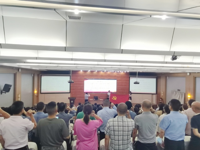 “没有共产党,就没有新中国……”“团结就是力量,这力量是铁,这力量是钢”……下午3点,在大家充满激情的大合唱中,本次主题党日活动拉开了序幕。在王政书的领誓下,全体党员重温了入党誓词。