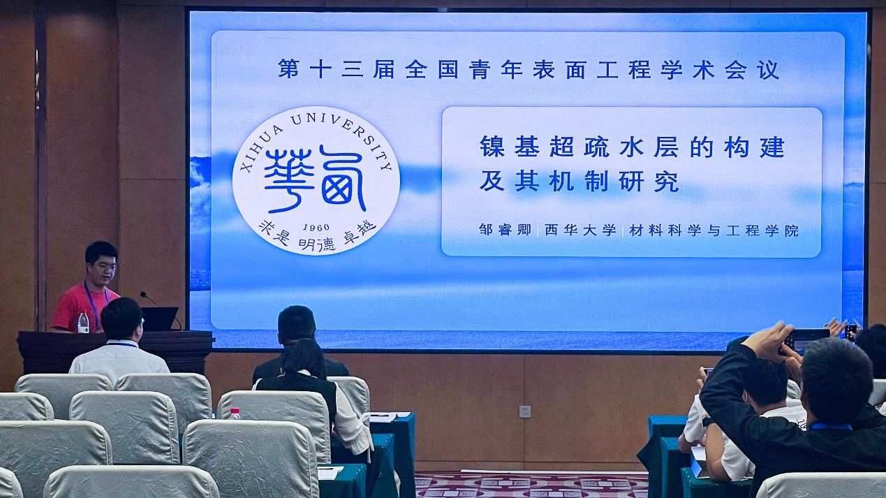 16日上午,我校材料科学与工程学院硕士研究生邹睿卿在本次大会分会场作了题为“镍基超疏水层的构建及其机制研究”的学术报告。报告就目前复杂环境下功能化超疏水构筑的难题,针对性地构建了高弹跳纳米锥“蹦床”结构和定向运输模块化“轨道”结构,全面展示了超低表面能结构的出色功能化超疏水特性,引发了与会专家学者的兴趣与关注。此次报告所分享的研究成果已于ACS Applied Materials & Interfaces等高水平国际期刊上发表。
