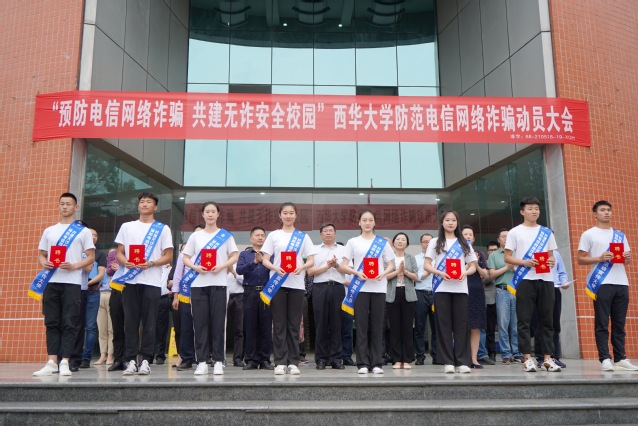 为进一步做好校园防范电信网络诈骗工作,营造校园防范电信网络诈骗宣传教育氛围,提高我校学生的防骗识骗能力,5月19日中午,以“预防电信网络诈骗 共建无诈安全校园”为主题的防范电信网络诈骗动员大会在明德广场举行。校党委副书记王政书,红光派出所所长许刚,各相关职能部门主要负责人,各学院分管学生工作党委书记(副书记),各学院学生工作办公室主任、学院团委书记、全体专职辅导员(兼职班主任)以及各学院学生代表2000余人出席了活动。活动由学生工作部部长王大清主持。