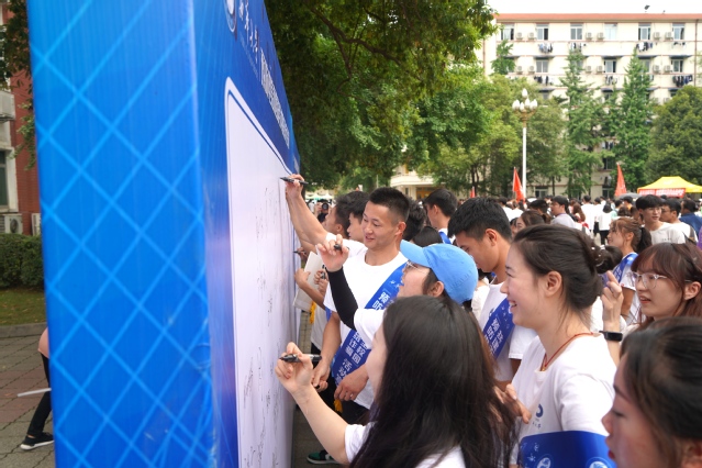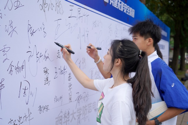 动员大会结束后,与会领导嘉宾及学生来到签名墙处签名。学生纷纷表示将提高防范电信网络诈骗能力,不让犯罪分子有可乘之机,为建设无诈安全校园贡献力量。
