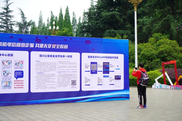 动员大会上,与会领导嘉宾为学生代表佩戴学校防范电信网络诈骗宣传大使绶带并颁发聘书。防范电信网络诈骗宣传大使协助现场师生下载并安装“国家反诈中心APP”。
