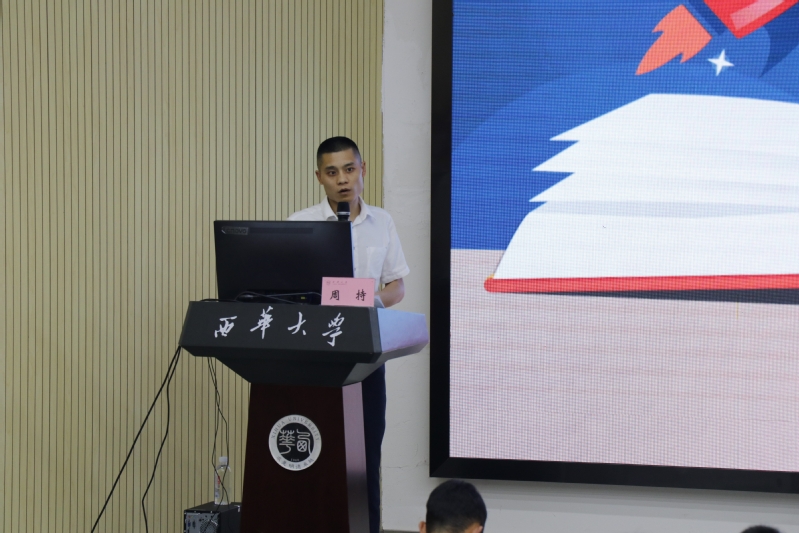 讲座在播放防电信诈骗宣传片中拉开了序幕。周持围绕电信网络诈骗现状、典型案例和国家相关要求三个方面展开了讲述。讲座开展过程中,周持通过例举真实案例、发放宣传单等形式,向同学们详细展示了电信诈骗犯罪的作案形式及手段。针对层出不穷的电信诈骗手段,如刷单返利、贷款、代办信用卡等,周持与黄超元系统分析、反复强调。讲座最后,周持与黄超元发出呼吁:“防范网络诈骗能力,捂好自己钱袋子!”