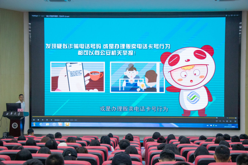 5月20日下午,为进一步扩大电信反诈宣传覆盖面,提高学生的防诈骗意识,从源头上有效遏制电信网络诈骗案件的发生,宜宾校区防范电信网络诈骗动员大会暨专题讲座在101报告厅举行。本次讲座特邀中国移动三江新区分局局长周持、宜宾市公安局临港分局刑侦大队警官黄超元担任主讲人,校区200名学生参加。
