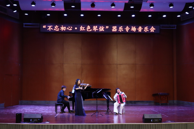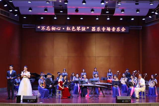 为庆祝中国共产党成立100周年,6月1日晚,由音乐与舞蹈学院承办的“不忘初心·红色琴弦”器乐专场音乐会在我校音乐厅拉开帷幕。此次演出,师生用管乐艺术讴歌伟大的党,讴歌伟大的祖国和人民,鼓舞全国人民紧密地团结在以习近平同志为核心的党中央周围,万众一心,为实现“两个一百年”的目标而努力奋斗。