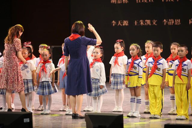 星星和火炬指明前程,今年的六一,有44名同学加入了少先队,各中队辅导员在队旗下,为44名新进少先队员佩戴上了鲜艳的红领巾,少先大队辅导员涂鹏老师带领新队员们进行了庄严的宣誓。红领巾是五星红旗的一角,少先队员是共产主义的接班人。在新少先队员入队仪式之后,就是对优秀少先队员的表彰,希望优秀少先队员们珍惜荣誉,不断努力,做少年先锋队的领头羊,带领全体少先队员更上一层楼!