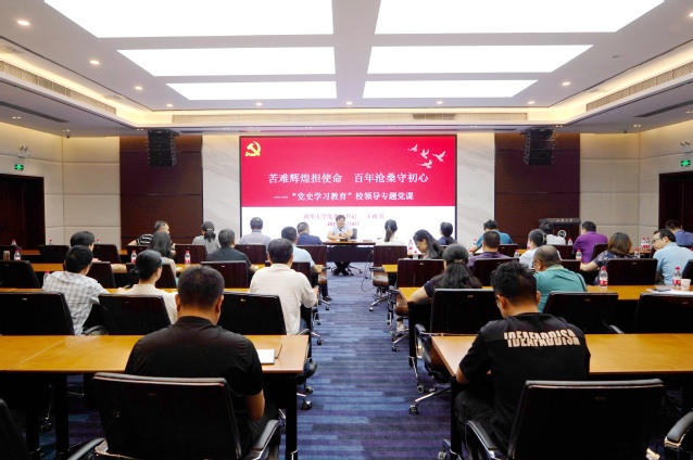 6月4日上午,校党委副书记王政书在办公楼101会议室,为分管部门和联系学院党员干部作题为《苦难辉煌担使命 百年沧桑守初心》的专题党课。