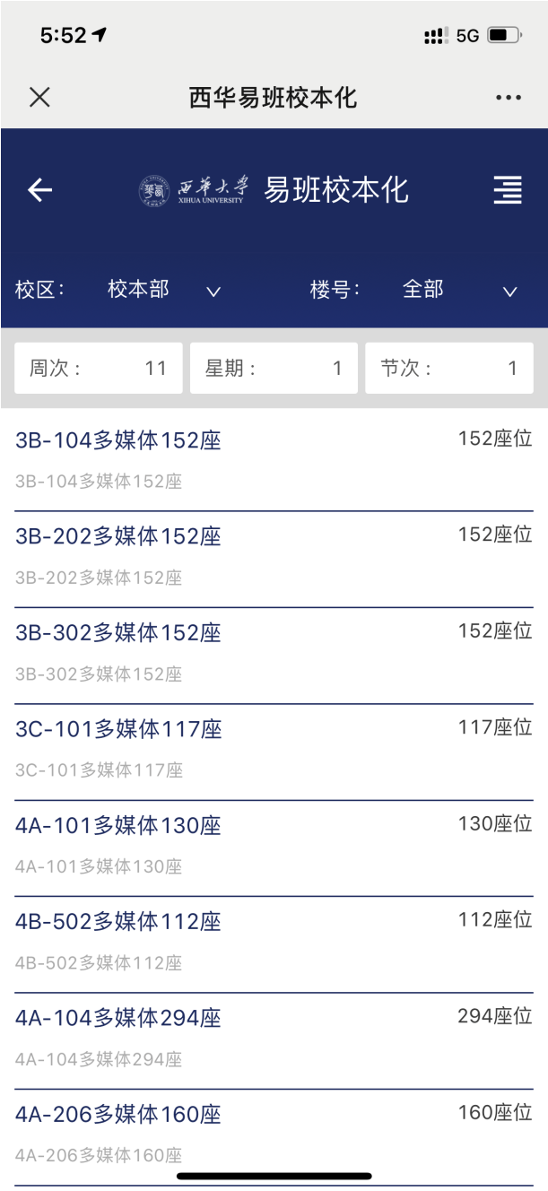 西华易班空教室查询截图