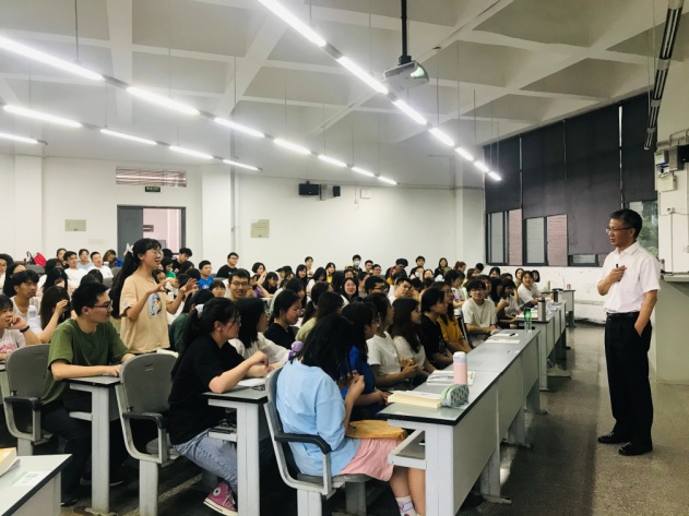 刘校长的课堂有深度、有广度,更有温度。听课期间,同学们的笑声和掌声不断。课程尾声,刘校长与同学们展开交流与互动,并对同学们提到的图书馆环境、运动场地等问题一一作了解释和回答。