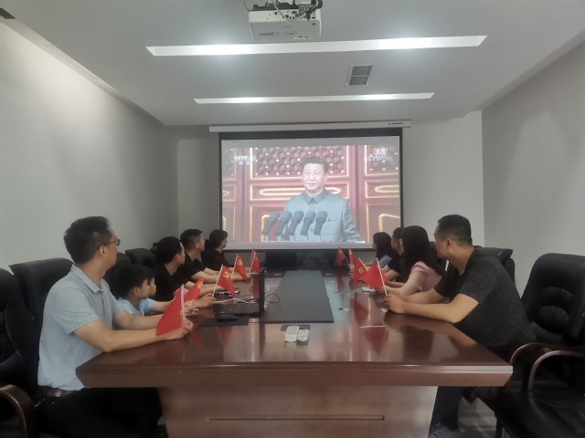 升旗仪式结束后,全体校领导,各学院党委(党总支)书记、院长和机关业务部门负责人及师生代表分别在办公楼101会议室、四教报告厅收看庆祝中国共产党成立100周年大会。各学院、各部门组织师生在会议室、易班学生工作站以及学生宿舍,通过电视、网络等平台收看大会现场直播。