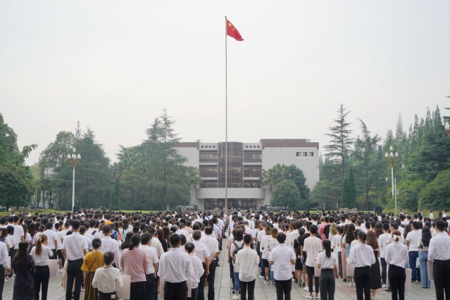 百年征程波澜壮阔,百年初心历久弥坚。为隆重庆祝中国共产党成立100周年,7月1日早上,我校在校本部、宜宾校区、彭州校区同时举行升旗仪式,并组织师生集中收看庆祝中国共产党成立100周年大会。全体校领导、各学院党委(党总支)、机关党委、后勤服务总公司党委、人南校区管委会党委负责人,各党支部书记,党员代表及师生代表参加升旗仪式。