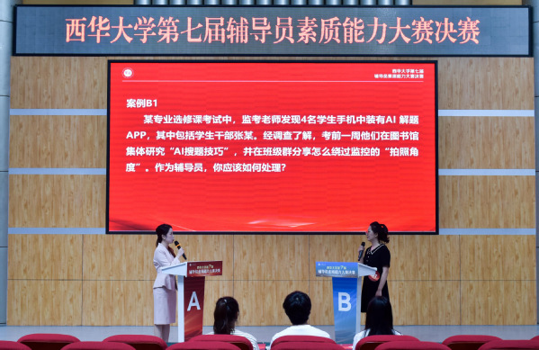 为持续推动辅导员队伍专业化、职业化发展,全面提升辅导员专业素养、育人能力与综合职业水平,9月29日,我校第七届辅导员素质能力大赛决赛在四教报告厅举行。各校区同步设立集中观摩点,全体专职辅导员通过“线上+线下”相结合的方式沉浸式参与学习,共同见证参赛选手的专业风采。