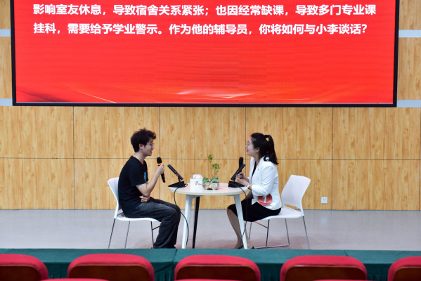 谈心谈话环节则以“情景模拟”形式还原师生沟通场景。比赛中,选手们摒弃“说教式”沟通,以温暖亲和的语气倾听学生诉求,用共情理解的态度疏导负面情绪:面对自卑的学生,他们巧用“励志榜样分享+资源对接建议”帮其重建信心;面对迷茫的学生,他们通过“职业性格测试解读+发展路径规划”提供方向指引。