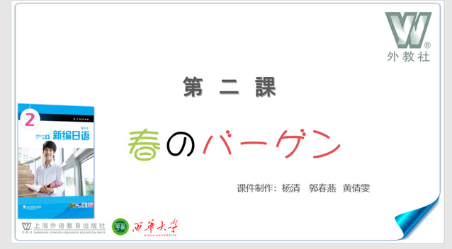 电子课件是教师丰富课堂的重要手段之一,我校外国语学院高度重视本次比赛,组织日语系教师进行专题讨论,最终选派杨清、黄倩雯、郭春燕三位老师代表西华大学参赛。三位老师经过教材遴选、教学设计、反复打磨到最终定稿,以绝对的优势斩获本次大赛全国特等奖。