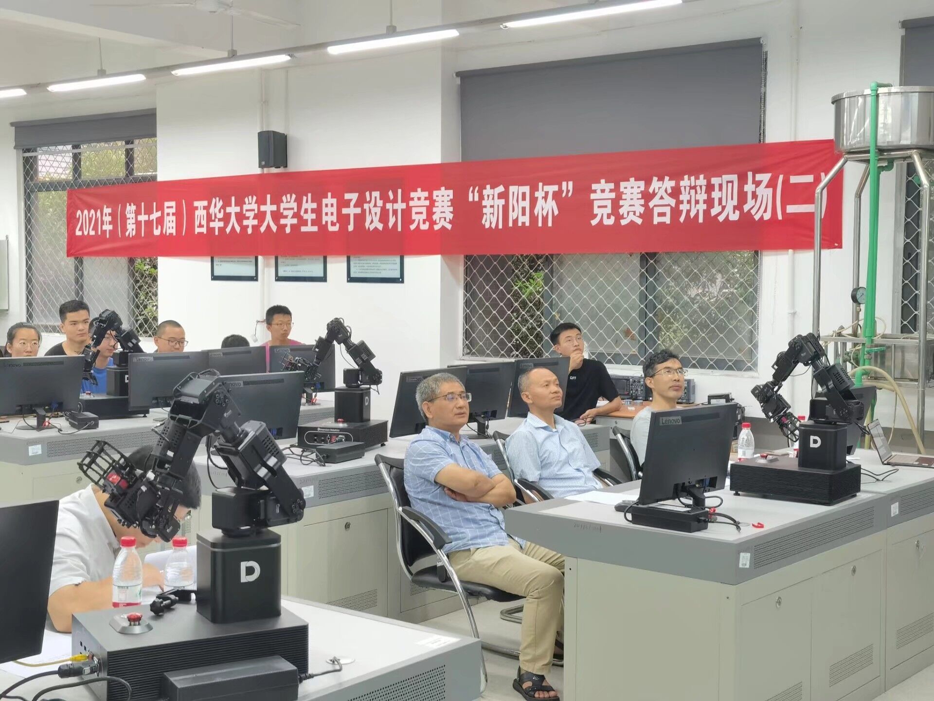 为提升学生实践动手能力,培养学生实践创新与协作精神,帮助学生拓展科技创新知识,提高学生针对实际问题进行电子设计制作的能力,7月15日上午,由电气与电子信息学院和技研新阳集团共同主办的“西华大学(第十七届)‘新阳杯’大学生电子设计竞赛”作品评审及颁奖仪式在第六教学楼成功举行。