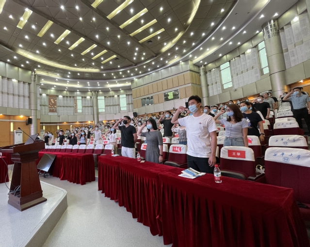 培训开班仪式上,教务处处长蒋珍菊作为领誓人带领全体新入职教职工进行了入职宣誓。
