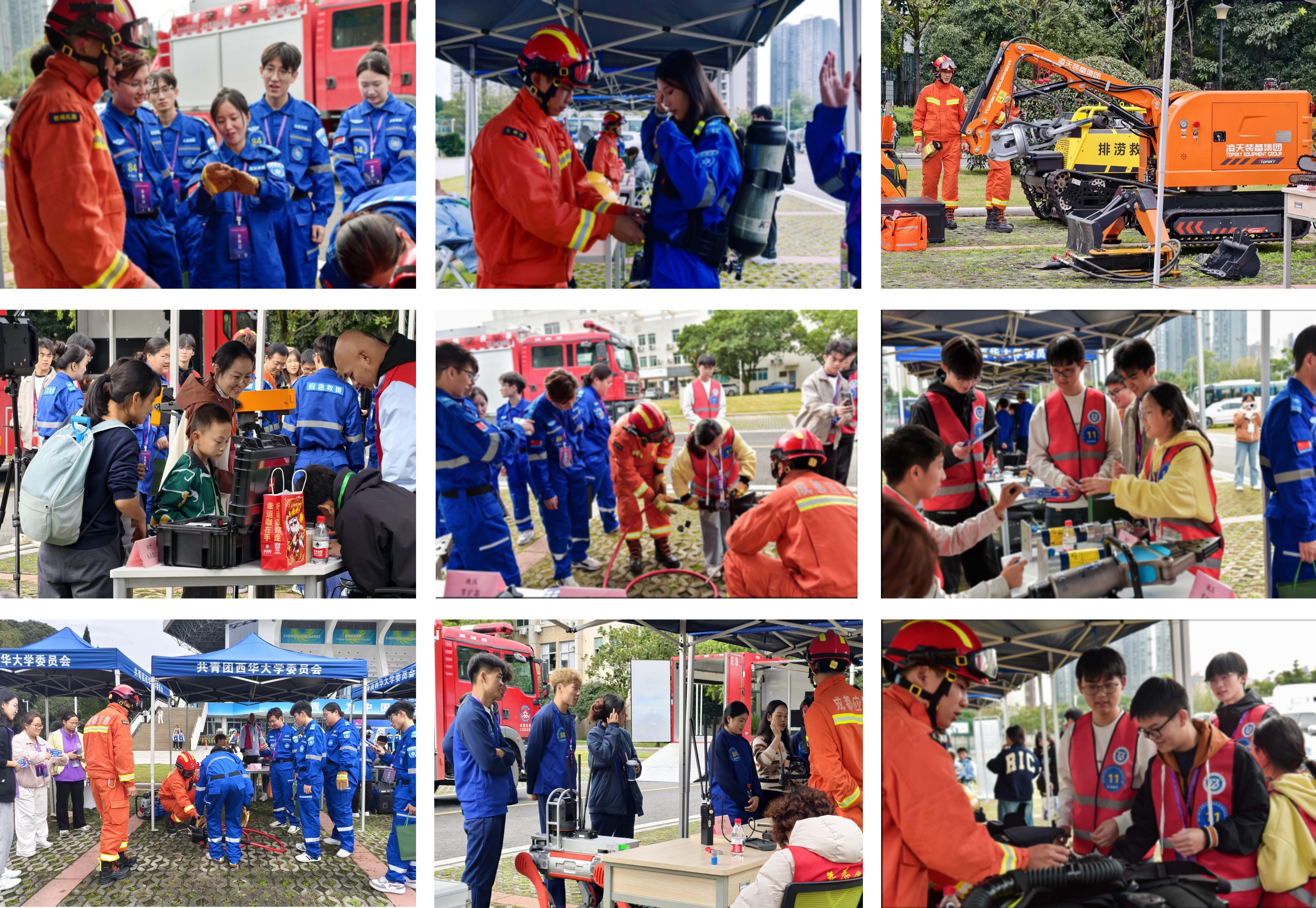 大赛期间还举办了“先进应急装备展示与互动科普”活动,面向师生及亲子家庭开放,设置防护装备、救援车辆、搜救器材、救生机器人及互动体验五大板块。在专业教官与安全员的指导下,参与者近距离接触先进设备,有效提升了公众的应急知识与实操能力。
