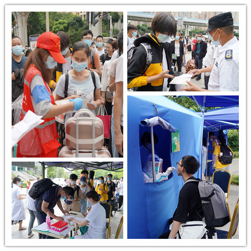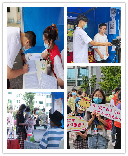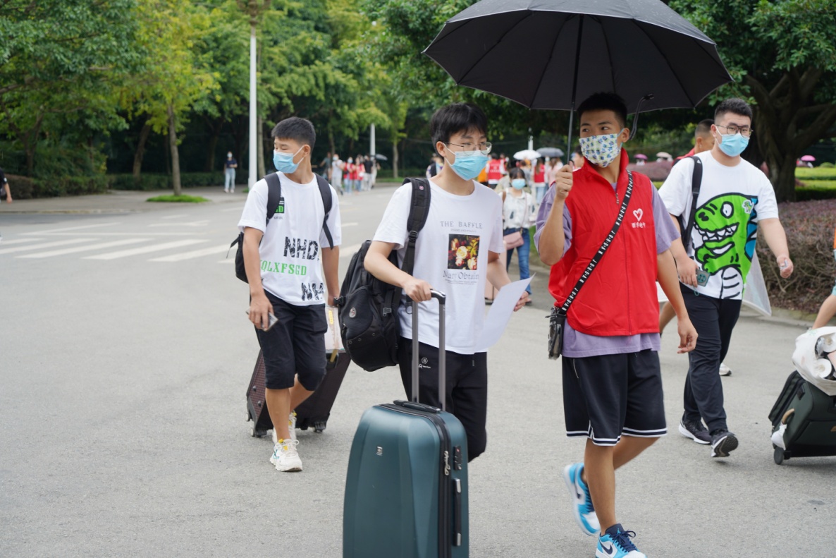 因为疫情防控要求,学校安排四川省内外生源分流入校,四川省外生源的学生从南大门走专用通道入校报到,四川省内生源的学生从学校南大门或东大门入校。新生进入校门时,在志愿者的引导下,出示“四川天府健康通”绿码并扫描场所码,经过测温、验证登机登车前48小时内核酸检测阴性证明及入校报到凭证等环节后进入校园。生源地为省外的新生还需到指定位置做核酸检测后可进入校园。