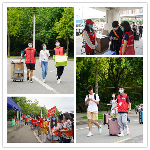 为了迎接新同学的到来,各个学院和各部门都安排了志愿者分别在南大门和东大门迎接学弟学妹的到来,将新生引导到求是广场迎新集中报到点进行报到。校门口和报到点设置了饮水区,方便新生和工作人员休息。校医院在新生通道旁设置了临时观察点重新检测体温异常的新生,报到点也设置了新生医疗服务点应对紧急突发情况。为帮助新生将行李运送到宿舍,后勤服务总公司调用校车、“小白龙”随时接送沿途需要乘车的新生。