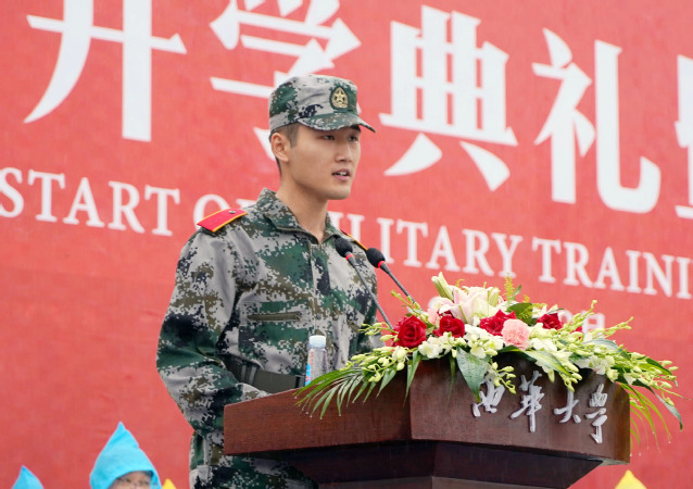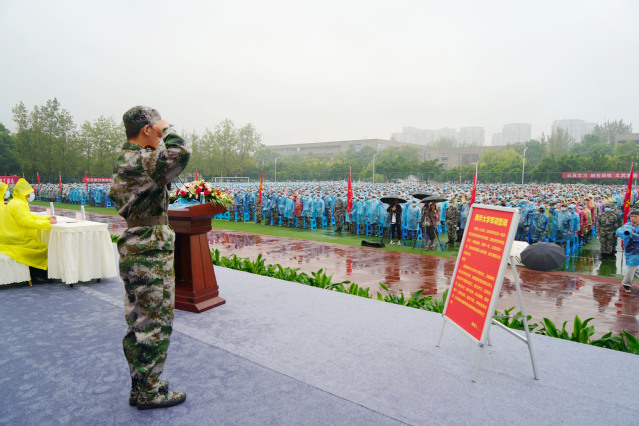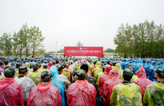 西华大学2021级新生开学典礼暨军训开训仪式现场