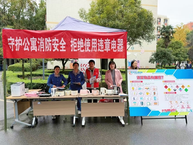 此外,各宿舍园区也积极开展消防安全宣传活动。志愿者驻点展示宿舍违禁电器,提醒同学主动排查安全隐患。各学院辅导员同步开展全覆盖寝室检查,及时清除潜在风险,共同营造安全、稳定的校园环境。