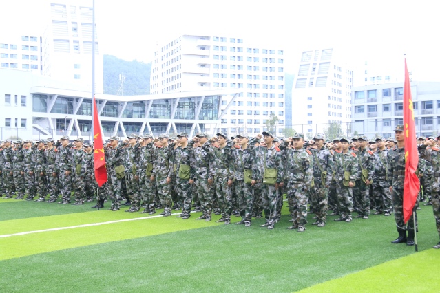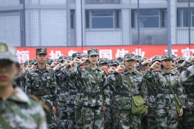 承训部队、武警宜宾支队中校大队长董益表示,希望同学们敢于挑战自我,除娇气、练胆气,去惰性、砺血性;乐于锤炼自我,战烈日、斗酷暑,比意志、拼作风;勇于超越自我,走前列、当标兵,扛红旗、争第一,经受军训的洗礼,练就军人的气质,走出坚定的步伐。