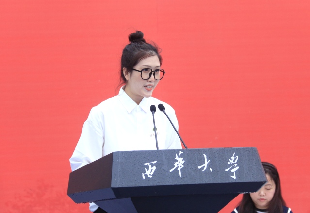 校区学生会代表、美术与设计学院产品设计专业李沛瑶分享了自己在宜宾校区的求学经历和感受,希望学弟学妹们只争朝夕,不负韶华,成为德智体美劳全面发展的新时代大学生,为实现中华民族伟大复兴的“中国梦”贡献西华力量!