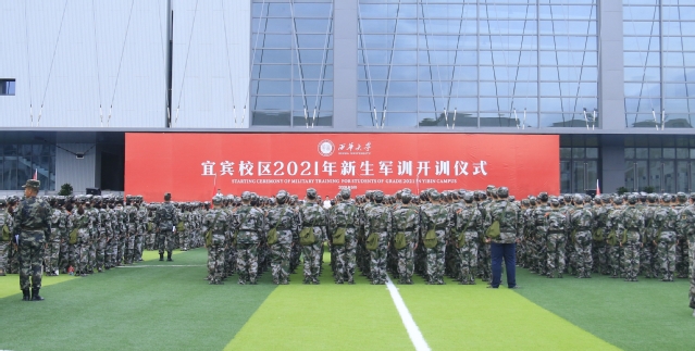 西华大学宜宾校区2021年学生军训开训仪式现场