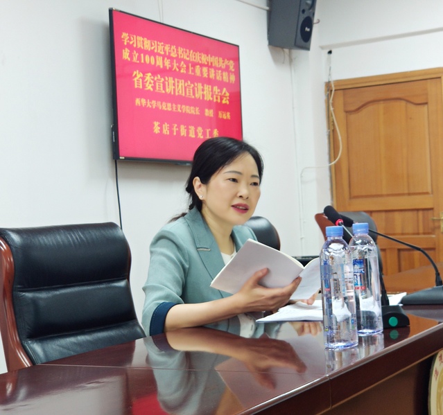 为学习宣传贯彻习近平总书记“七一”重要讲话精神,推动全省上下持续兴起学习宣传贯彻习近平总书记“七一”重要讲话精神热潮,推动“七一”重要讲话精神走进基层、深入人心。9月15日、17日,西华大学马克思主义学院院长万远英教授作为省委宣讲团成员赴眉山市彭山区、成都市金牛区开展学习贯彻习近平总书记“七一”重要讲话精神宣讲报告会。眉山市彭山区党群系统、宣传系统分管领导、各镇街道分管领导、区委宣讲团党史学习教育巡回指导组成员、区委党史学习教育办公室所属人员参加报告会;成都市金牛区茶店子街道办事处党群系统,街道办事处党史学习教育办公室人员,锦城社区、育苗社区、化成社区等7个社区的党员代表参加报告会。