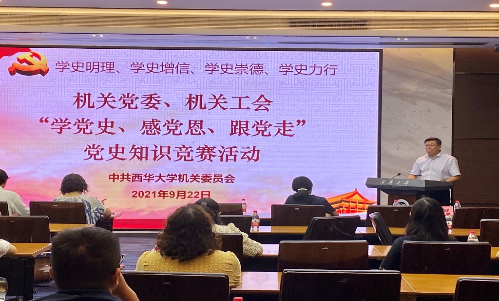 学习百年党史,汲取奋进力量。为深入学习贯彻习近平总书记在党史学习教育动员大会上的重要讲话精神,以及习近平总书记在庆祝中国共产党成立100周年大会上的重要讲话精神,扎实开展党史学习教育,以丰富多彩的形式营造“比学赶帮超”的良好学习氛围,9月22日,机关党委、机关工会在办公楼101会议室举行“学党史、感党恩、跟党走”党史学习教育知识竞赛,竞赛采取统一时间、统一地点、统一线上答题的方式进行。