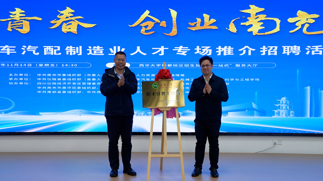 作为成渝地区双城经济圈重要节点城市,南充市以“汽车汽配、油气化工、丝纺服装”为核心的产业集群正加速崛起。此次专场招聘会聚焦汽车汽配制造业,精准匹配西华大学工科优势学科与地方产业需求。活动现场,校地双方共同为“西华大学-南充市引才工作站”揭牌,标志着校地在人才共育、科研转化、产业服务等领域的合作迈入新阶段。