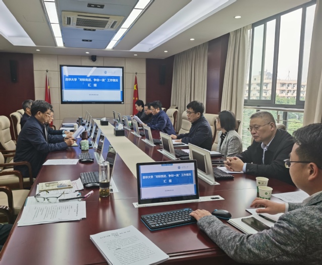 与会同志共同学习了四川“对标竞进、争创一流”工作的系列安排部署及其他高校推进情况,特别是对标对表全省高校“对标竞进、争创一流”读书班精神,谋划部署了学校大力推进“对标竞进、争创一流”活动深入开展的相关举措。