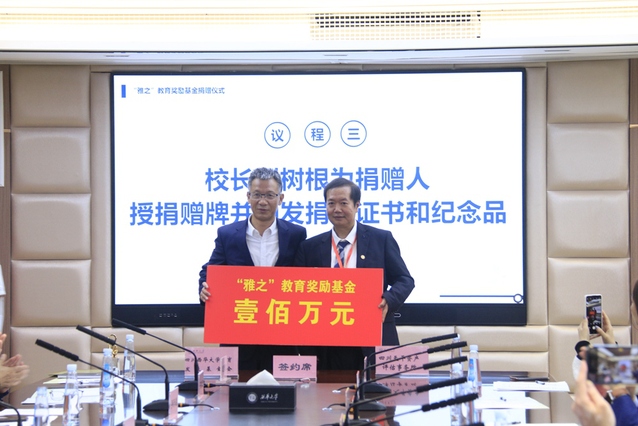 随后,四川天平资产评估事务所总经理封晓川、基金会理事长罗开春分别代表双方签订捐赠协议。根据协议,四川天平资产评估事务所将向学校捐赠100万元设立“雅之”教育奖励基金,用于管理学院师生教育奖励。刘树根为捐赠人封晓川校友授捐赠牌并颁发捐赠证书和纪念品。